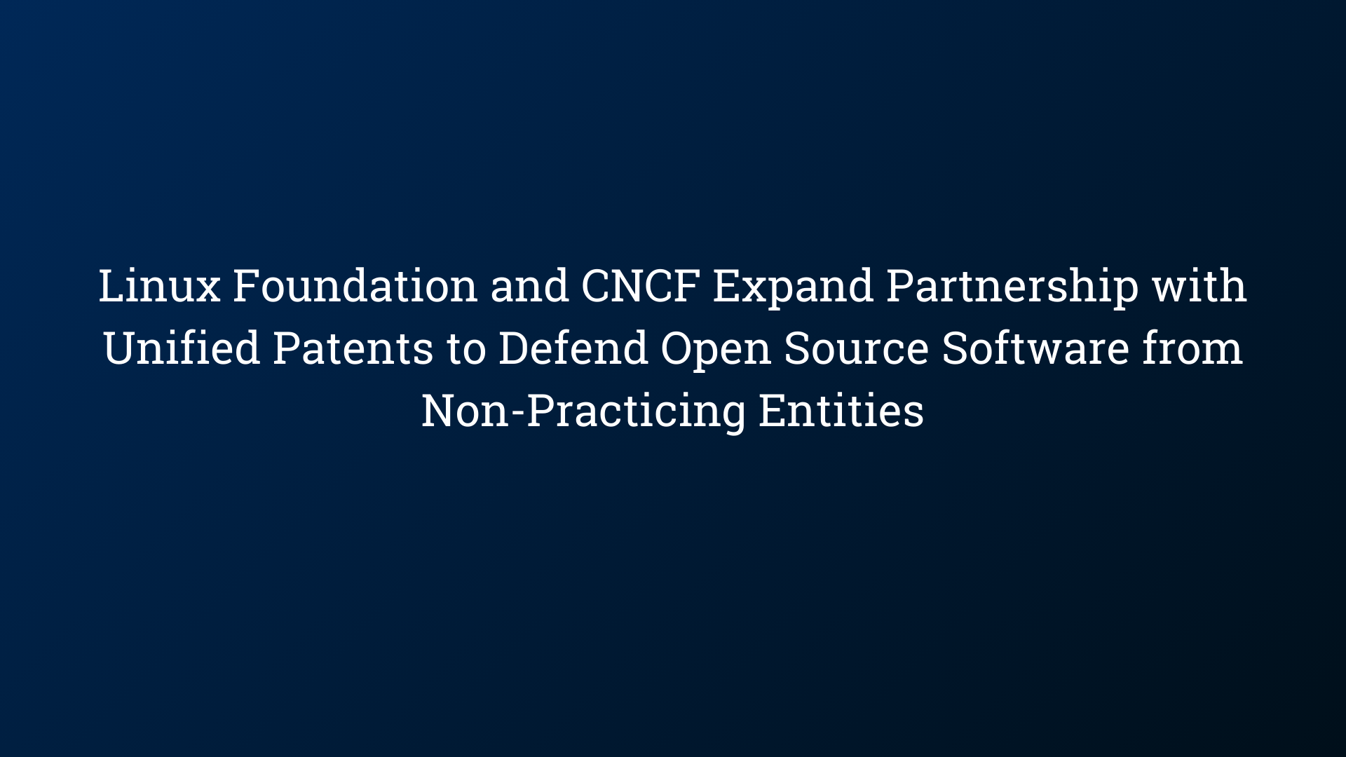 Linux Foundation and CNCF Expand Partnership with Unified Patents to Defend Open Source Software from Non-Practicing EntitiesSep 16, 2024 12:00:00 AM